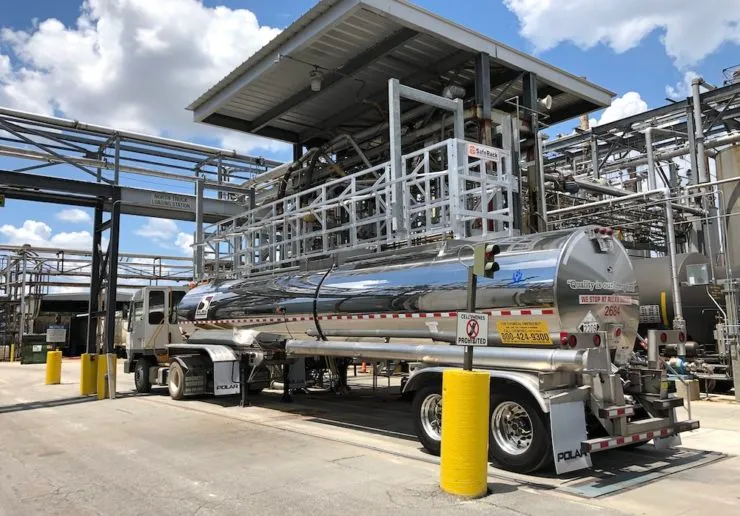 In the United States, MIC is typically a “tight-fill” (closed-loop) loading operation and is loaded into rail cars via chemical hoses or 3” stainless steel loading arms. Methyl isocyanate, if not handled properly can cause serious injuries and Personal Protective Equipment (PPE) is required. Additionally, because operators are on top of the vehicles during the loading process, fall prevention is essential, not only for safety but increases throughput.