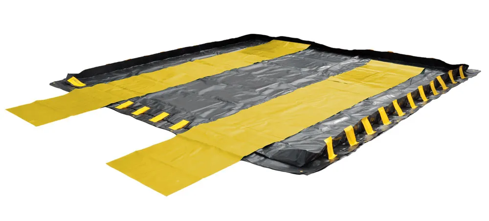 Spill containment berms for industrial needs such as fueling stations, chemical storage, and mobile containment