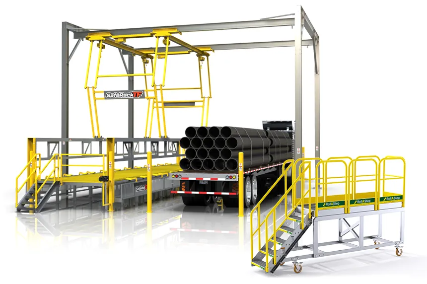 SafeRack’s solutions are ideal for irregular or heavy loads—such as pipes, lumber, or finished goods—where manual tarping or elevated access poses a significant safety risk.